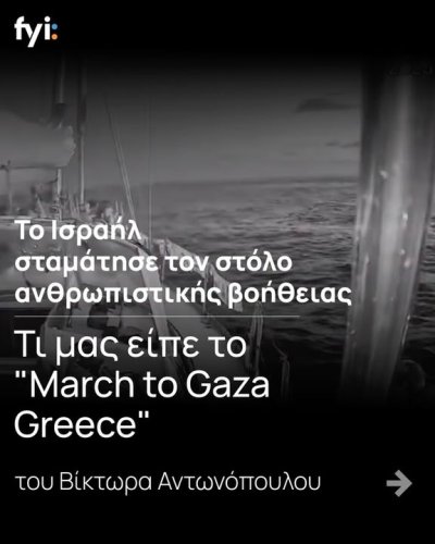 fyi.news.official Ο Βίκτωρας Αντωνόπουλος vic.antono μίλησε με την ομάδα του marchtogaza_greece για το μπλοκάρισμα του στόλου ανθρωπιστικής βοήθειας ισραηλινές δυνάμεις. Δείτε τι μας είπαν κάνοντας swipe ή στην ιστοσελίδα μας.