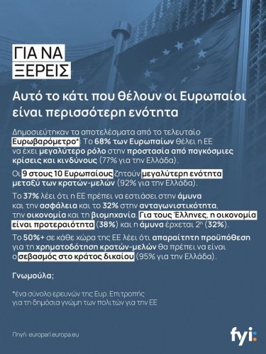 fyi.news.official 🇪🇺 Οι Ευρωπαίοι συμφωνούν πως: Όταν ο κόσμος αλλάζει, η Ευρωπαϊκή Ένωση πρέπει να είναι εκτός από παρούσα και ενωμένη. Σύμφωνα με το ευρωβαρόμετρο οι πολίτες ζητούν από την ΕΕ... Διάβασε περισσότερα