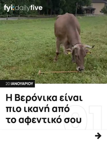 fyi.news.official 🐄 Η Βερόνικα, μια 13χρονη οικόσιτη αγελάδα στην Αυστρία, είναι η πρώτη επιβεβαιωμένη περίπτωση βοοειδούς που χρησιμοποιεί εργαλείο: πιάνει μια σκούπα με το στόμα και ξύνει την πλάτη της.