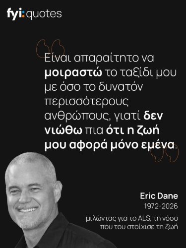 fyi.news.official Ο Eric Dane έφυγε από τη ζωή μετά από μάχη με το ALS (Αμυοτροφική Πλευρική Σκλήρυνση), μια νόσο για την οποία μίλησε ανοιχτά, χωρίς ωραιοποιήσεις. Άλλοι τον αγαπήσαμε ως Mark... Διάβασε περισσότερα