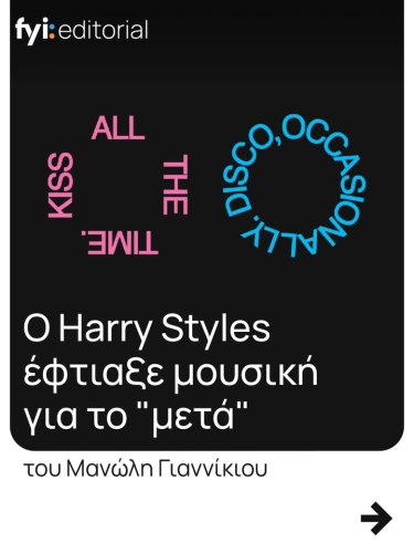 fyi.news.official Στο νέο του editorial, ο mgiannikios γράφει για το Kiss All The Time, Disco Occasionally, το νέο άλμπουμ του Harry Styles που κυκλοφορεί από τη sonymusicgr, σαν έναν δίσκο που... Διάβασε περισσότερα