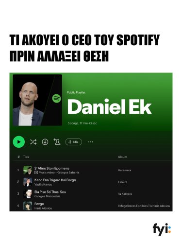 fyi.news.official Ο Daniel Ek, συνιδρυτής του Spotify, ανακοίνωσε ότι από 01.01.2026 θα αποχωρήσει από τη θέση του CEO, αναλαμβάνοντας καθήκοντα εκτελεστικού προέδρου.