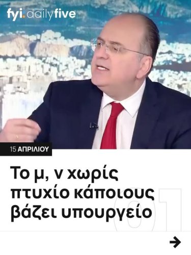 fyi.news.official Ο νέος υφυπ. Αγρ. Ανάπτυξης Μ. Λαζαρίδης δέχεται τα πυρά της αντιπολίτευσης για το πτυχίο του, βάσει του οποίου προσελήφθη το 2007 ως μετακλητός συνεργάτης στο Υπ. Παιδείας.
