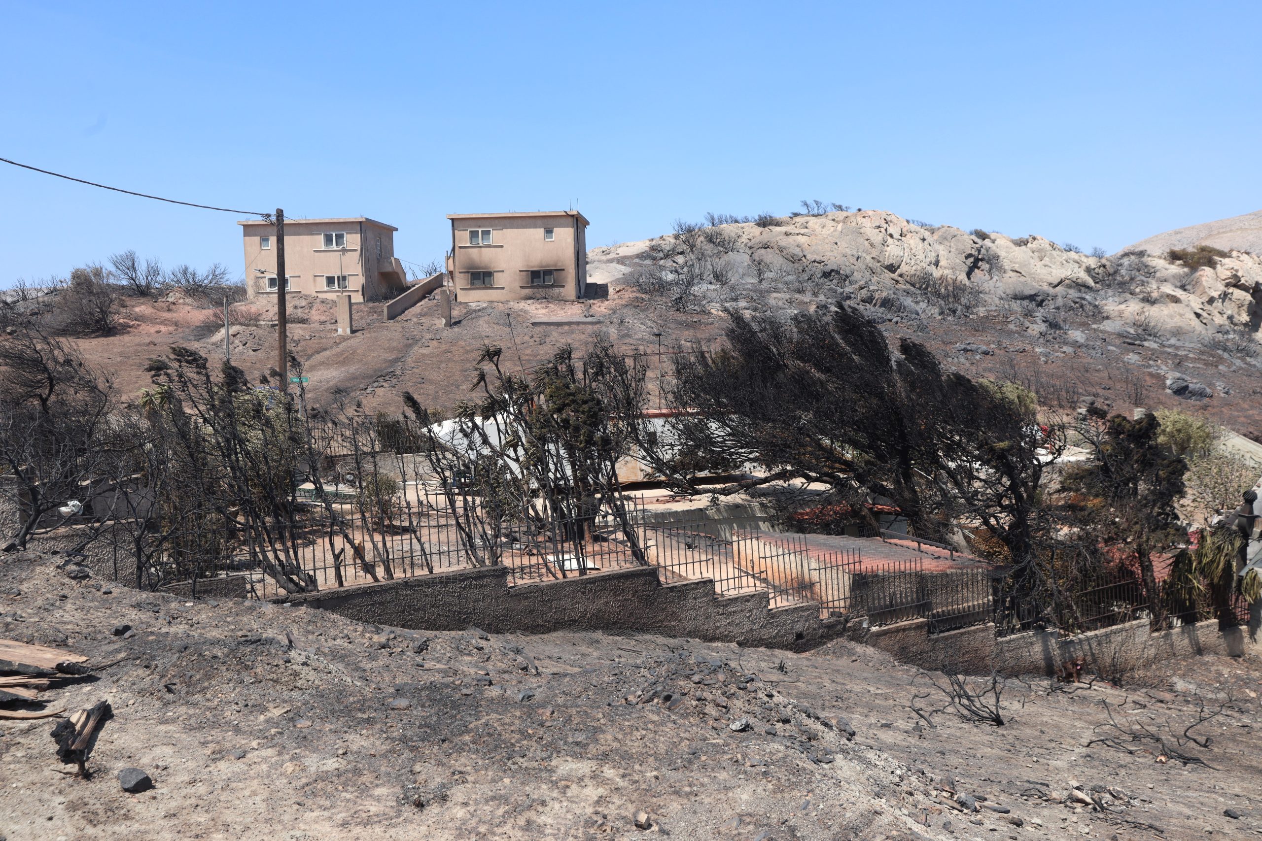 Συνελήφθησαν δύο υπάλληλοι του ΔΕΔΔΗΕ για την πυρκαγιά, καθώς η φωτιά ξεκίνησε από κομμένο καλώδιο και εκείνοι κατηγορούνται για παραλείψεις στη συντήρηση του δικτύου.